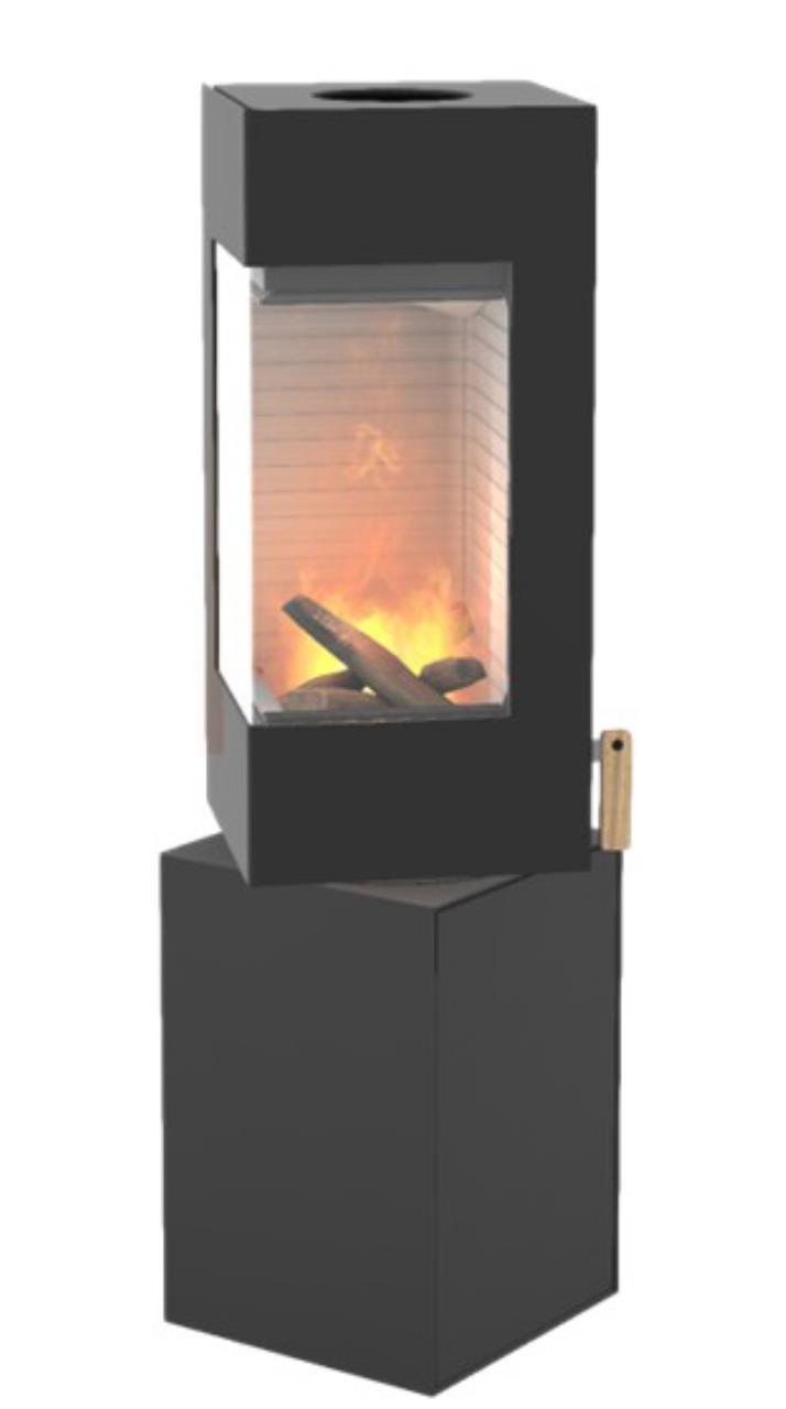 , drehbar. Glas-Feuertür durchgehend über Eck, Doppelverglasung. Korpusrand und Türe Stahl. Oberteil 360° drehbar. Dieser Ofen bietet einen wunderschönen Blick auf das lodernde Feuer. Konfigurieren Sie Ihren Ofen nach Wunsch.Heizleistung: 3,0 - 7,0 kW