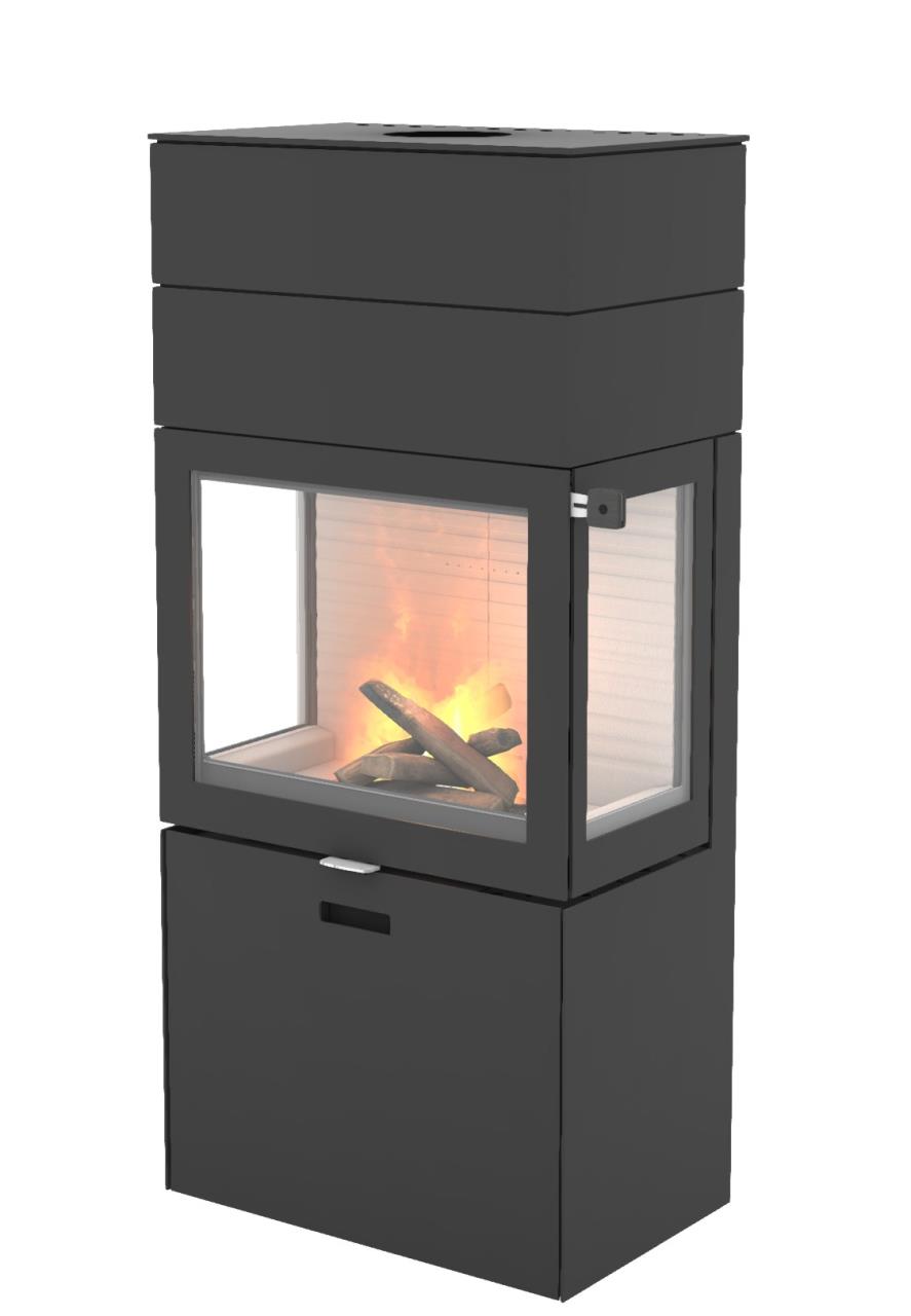 Stahl schwarz mit 3-seitiger Feuersicht. Infrarot beschichtete Feuerscheiben sorgen für ein sauber brennendes Feuer. Costamized-Konzept für verschiedene Lackfarben, Türgriff-Designs sowie Tür- und Seitenfenster-Varianten. Holzschublade mit Softeinzug. Konfigurieren Sie Ihren Wunschofen.Heizleistung: 4,0 - 8,0 kW