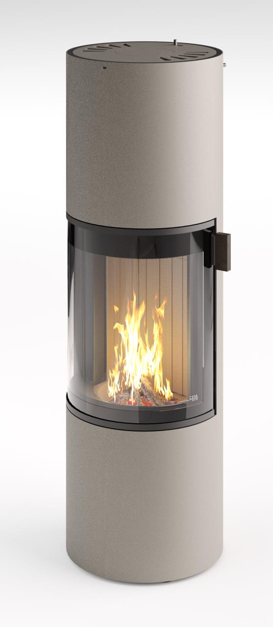 . Stahl Champagner. Mit besonders grosser, gerundeter Feuertür. Feuereinsicht 180°.Heizleistung: 6,0 kW
