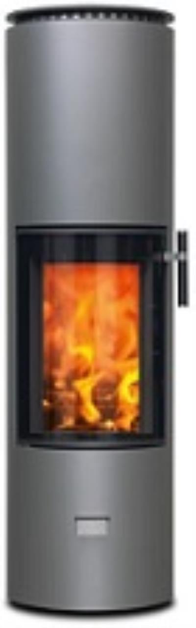, rund, Stahl grau. Inliegender Powerblock 80 kg, für lang anhaltende Wärmeabgabe. (mit ca. 8 kg Holz bis zu 10 Std. Wärmeabgabe). Verschliessbare Konvektionsluftöffnungen. Grosse Glasscheibe.Heizleistung: 6,0 kW