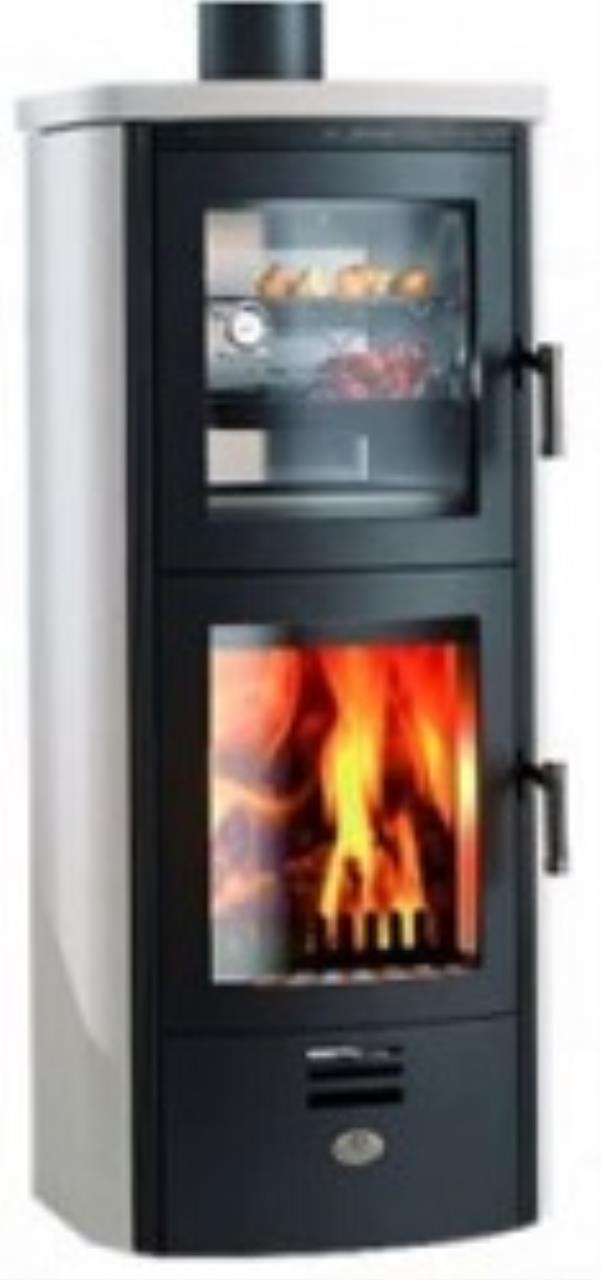 BF, Speicher-Kaminofen mit Backfach für Braten, Holzofenbrot, Pizza, Kuchen usw. Mit 2 Einschubleisten, Backblech, Chrom-Rost und Thermometer. Kühler Heiztürgriff. Ausführung: Korpus Anthrazit / Speicherstein Creme glatt. Der Betrieb ist wahlweise zwischen Holz oder Pellets mit den stromlosen Einsätzen K02S und K02XL möglich.Heizleistung: Scheitholz 6,5 kW