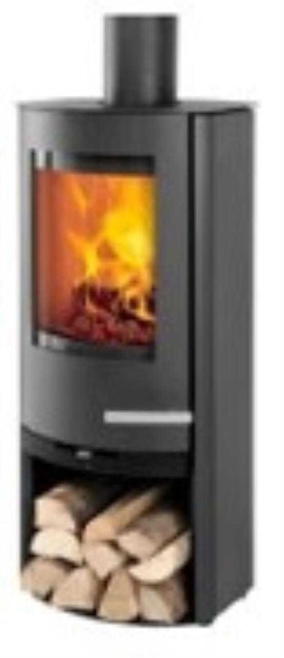 Einfacher Kaminofen Termatech TT 20 mit geraden Seiten. Stahl schwarz. (Basismodell). Mit Aschelade und Scheibenspülung.